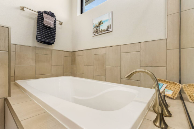 Primary Suite: King bed + spa-style en-suite with a deep soaking tub and stand-up shower β your private retreat after a day in the sun.