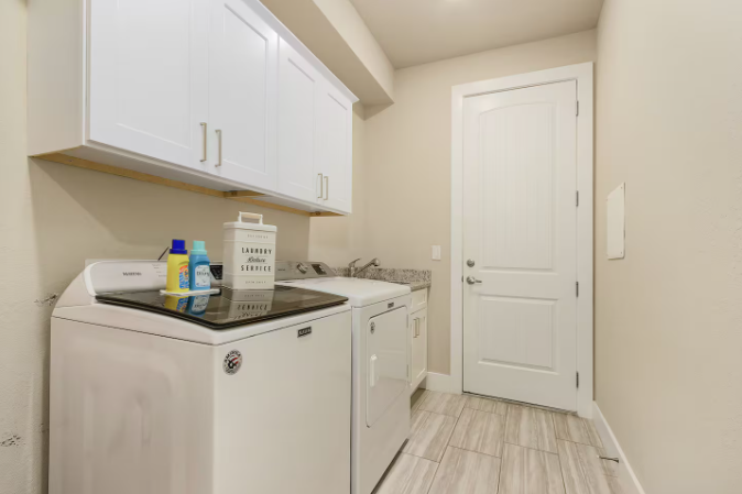 Full-size washer + dryer with a utility sink β perfect for longer stays