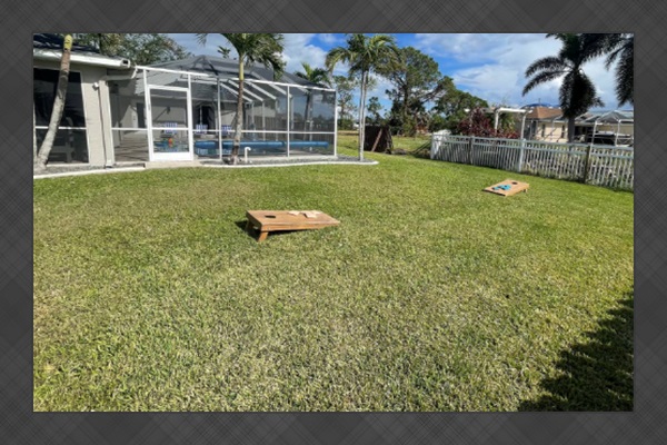 4 Bedrooms • 2 Bathrooms 2 Baths • Sleeps 1-9Welcome to Palm Tree Place! Get ready to relax and enjoy the beautiful view of the turquoise pool from almost every room in the house! Enjoy playing a game of bags in the spacious backyard or move indoors for a game of football! This spacious 4 bedroom home has air conditioning and an open concept layout with walk out patios to the screened southern facing pool. Whether your goal is to work on your perfect poolside tan, or relaxing in the shade, this property has something for everyone.
